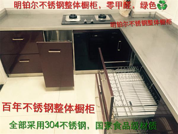 明鉑爾不銹鋼櫥柜,零甲醛,不怕水,不怕火,不變形,可以使用100年,售后無憂,德國五金,304食品級材質,集成灶一體,為您和家人健康保駕護航!