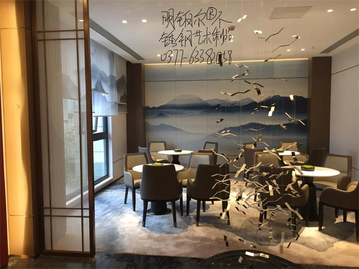 不銹鋼藝術屏風隔斷造型,明鉑爾不銹鋼藝術工程,南陽青楓苑售樓中心,深圳香港設計大師,國際藝術標準設計,