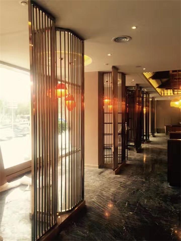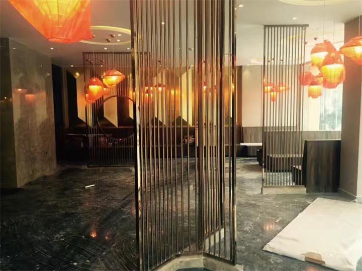 不銹鋼藝術屏風隔斷造型,明鉑爾不銹鋼藝術工程。芒果酒店藝術不銹鋼工程。