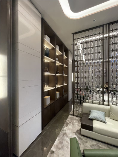 休息區(qū)的不銹鋼置物架和工藝屏風(fēng),為客戶(hù)提供更舒適的洽談環(huán)境