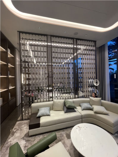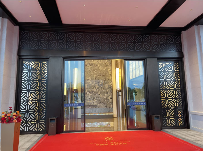走進(jìn)大門(mén),巨大的不銹鋼雕花屏風(fēng)映入眼簾