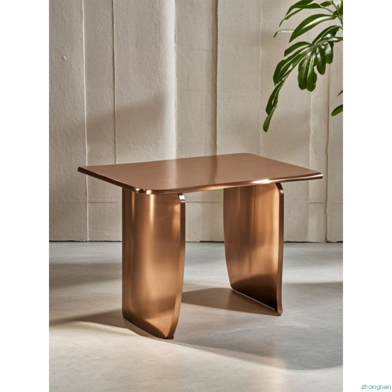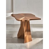 獨特的桌子以其古銅色的不銹鋼材質和不規則的設計,成為現代家居裝飾中的點睛之筆。它不僅具備實用功能,更是一件藝術品,為您的居室增添時尚與品味。